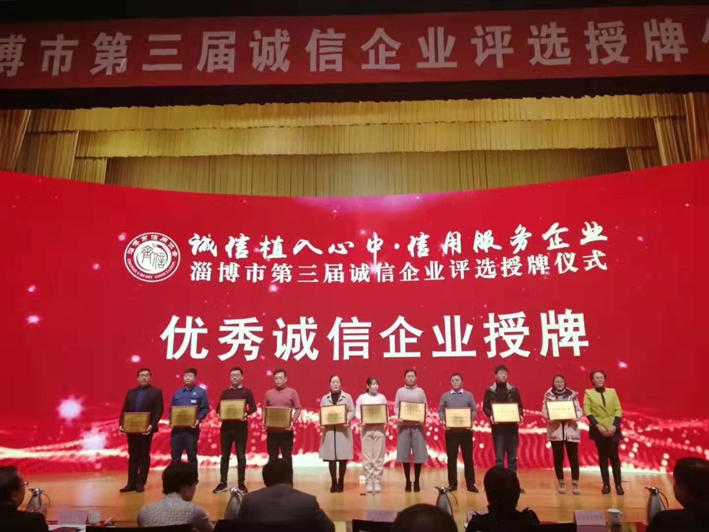 公司榮獲“淄博市優(yōu)秀誠信企業(yè)”稱號