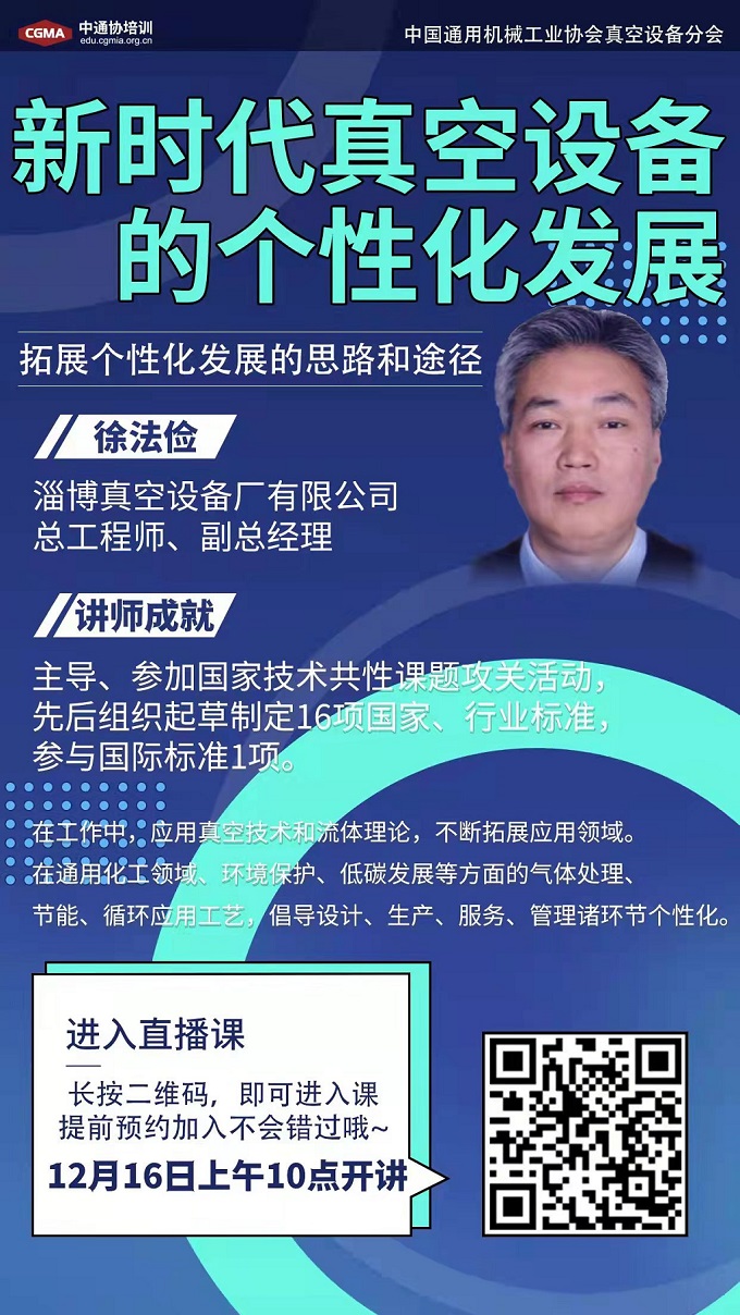 本次講座時(shí)間為:12月16日上午10點(diǎn)整,專題為《新時(shí)代真空設(shè)備的個(gè)性化發(fā)展》,歡迎大家提前完成注冊(cè),準(zhǔn)時(shí)在線收聽,交流互動(dòng)。