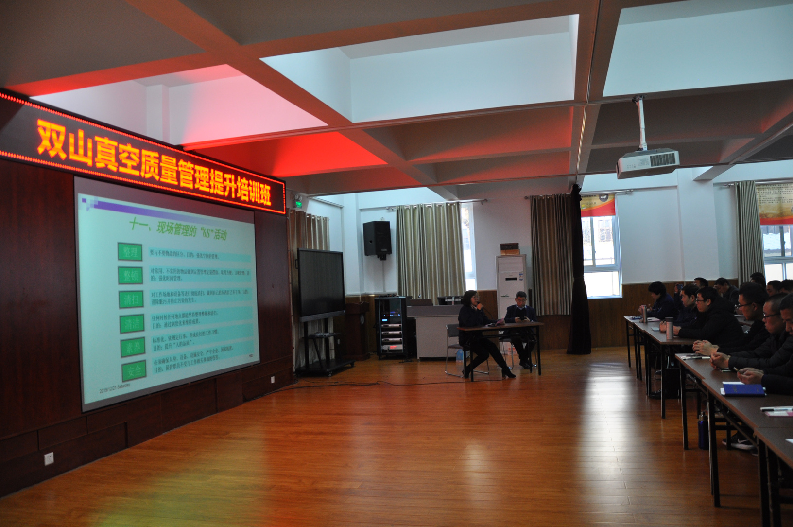 黃總在開班儀式中強(qiáng)調(diào) ——產(chǎn)品質(zhì)量是雙山真空的生命。建廠六十年來(lái),一代又一代員工一直秉承優(yōu)良的質(zhì)量精神,鑄就了如今的雙山品牌。公司作為中國(guó)真空工業(yè)的創(chuàng)始企業(yè),作為真空行業(yè)中唯一榮獲國(guó)家質(zhì)量獎(jiǎng)的企業(yè),我們肩負(fù)著振興民族真空制造業(yè)的重任。在面臨整體搬遷升級(jí)改造的節(jié)點(diǎn)上,公司全體員工一定要繼續(xù)發(fā)揚(yáng)老一輩員工的質(zhì)量精神,珍惜此次學(xué)習(xí)機(jī)會(huì),在各自的實(shí)際工作中,嚴(yán)格按照質(zhì)量管理體系的流程用心領(lǐng)悟、用心工作,讓產(chǎn)品質(zhì)量上一個(gè)新的臺(tái)階!